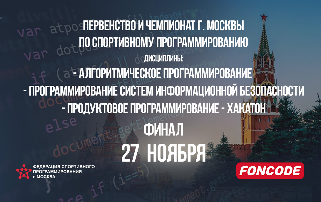 27 ноября состоится финал Первенства и Чемпионата г. Москва по спортивному программированию.